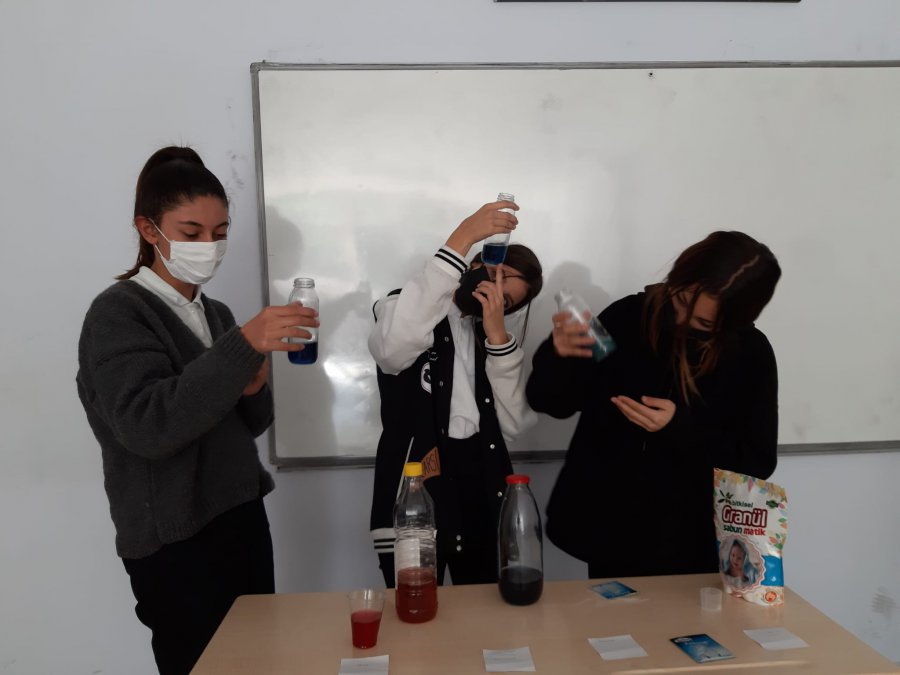 Okulumuz 9.sınıf öğrencileri, Biyoloji öğretmenleri Duygu ŞAHİN GEÇİCİ gözetiminde İnorganik Bileşikler Asit ve Bazlar konusunu deneyler yaparak pekiştirdiler. Öğrencilerimiz, çeşitli maddelerin ve yiyeceklerin asit ya da baz olduklarını doğal indikatör olan kırmızı lahana suyu kullanarak ispatladılar.